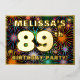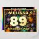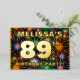 The front of this bold eighty-ninth birthday party/celebration foil invitation card design features a customizable name, a large number “89th”, the message “BIRTHDAY PARTY!”, and a border. The background of the front features an eye-catching, colourful pattern inspired by bursting celebratory fireworks. The back features personalized details about the event, such as the date, time, location/venue, and any other useful information. Customizable invitations like these might be a fun way to invite guests/attendees to a birthday party/gathering being held in celebration of somebody’s 89th birthday. [~Z0000602]