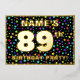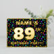The front of this exciting eighty-ninth birthday party foil invitation card design features a custom name, a large number “89th”, the message “BIRTHDAY PARTY!”, and a border. The background of the front has a vibrant, multicolored star shapes pattern. The back features personalized details about the event, such as the date, time, venue, and any other useful information. Personalized invitations like these might be a fun way to invite guests to a birthday party being held in celebration of somebody’s 89th birthday. [~Z0000600]