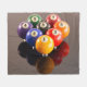 A high angle shot of heart shape pool balls reflecting on an acrylic board.