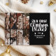Capture the magic of your engagement with this modern and cozy holiday card. Featuring a bold white script on classic black, paired with your favourite winter photo, this design celebrates your first Christmas as an engaged couple in timeless style. Personalize with your names and the year for a heartfelt seasonal keepsake.