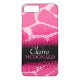 Coque iphone à motif animal brillant dans les tons noir et rose. Personnalisez cet objet avec votre nom complet. Voici l'exemple actuel : Claire Mcdonald. Ce motif original de Sarah Trett, est basé sur le dessin trouvé sur une girafe avec un moiré mi-teint point gain motif superposition.