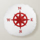 8-Point Compass Rose, Deep Red and White Round Pillow