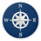 Knob in an 8-point compass rose design with a slight raised, 3-d effect - white on a navy / indigo blue background