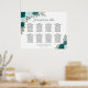 This elegant wedding seating chart includes 8 tables and is designed to add a touch of rustic charm to your special day. The exquisite hand-painted watercolor design showcases a beautiful arrangement of teal, turquoise, aqua, and cyan coloured roses adorned with sprigs of eucalyptus leaves and garden greenery. The seating arrangement can accommodate up to 80 guests with 10 seats per table with an elegant script calligraphy title and space for the couple's names and wedding date at the bottom. Wonderful way to elevate the style and elegance of your wedding reception, while making it easy for your guests to locate their seats.