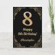 8th Birthday Black and Gold Glitter Frame Card