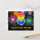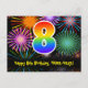 8th Birthday – Fun Fireworks Pattern + Rainbow 8 Postcard