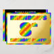 The front of this upbeat and fun eighth birthday celebration/party foil invitation card features a personalized name, a large number “8th”, the message “BIRTHDAY PARTY!”, and a border, all featuring a joyful, colourful, rainbow spectrum inspired gradient pattern. The back features personalized details about the event, such as the date, time, location/venue, and any other information that may be important. Eye-Catching, exciting, editable invitations like these might be used to invite guests to a birthday gathering being held in celebration of somebody’s 8th birthday. [~Z0000593]