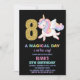 8th Rainbow Unicorn Birthday Invitations Black