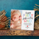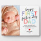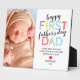 Custom new father picture plaque, featuring a simple white background, a photo of your beautiful baby, the title "happy first father's day dad", the cute saying "some men are born to be father's, and that someone is you!", a red heart, and the childs name.