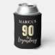 90 & Legendary Gold 90th Birthday Can Cooler. Celebrate 90th birthday with this elegant, customizable can cooler. Featuring bold, metallic gold-tone text '90 & Legendary', this design is ready for you to personalize with the name. It's the perfect gift to honor a father, grandfather, or cherished friend reaching this incredible milestone. This can cooler is ideal for birthday parties.