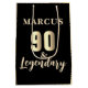 90 & Legendary Gold 90th Birthday Gift Bag. Celebrate Marcus's incredible 90th birthday with this elegant black and gold '90 & Legendary' design. Featuring a sophisticated metallic gold border and typography on a black background. Customize with any name.