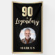 90 & Legendary Photo 90th Birthday Gold Metallic Banner for Him with a custom photo. Celebrate his milestone in bold style with this “90 & Legendary” 90th birthday party banner. Designed with a strong masculine look in gold metallic effects (printed, not real foil) on a black background, this banner is perfect for dads, grandpas, uncles, or friends.