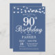 90e anniversaire Invitation avec lumières à cordes. Arrière - plan bleu. Hommes ou Femmes Anniversaire. 13ème 15ème 16ème 18ème 20ème 21ème 30ème 40ème 50ème 60ème 70ème 80ème 90ème 100ème, Tout âge. Pour plus de personnalisation, cliquez sur le bouton "Customiser" et utilisez notre outil de conception pour modifier ce modèle.