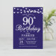 90e anniversaire Invitation avec lumière à cordes. Arrière - plan bleu de la Marine. 13e 15e 16e 18e 20e 21e 30e 40e 50e 60e 70e 80e 90e 100e, n'importe quel âge. Pour plus de personnalisation, cliquez sur le bouton "Customiser" et utilisez notre outil de conception pour modifier ce modèle.