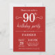 90e anniversaire Invitation avec Arrière - plan rouge. Anniversaire adulte. Hommes ou Femmes Anniversaire Invitation. 13ème 15ème 16ème 18ème 20ème 21ème 30ème 40ème 50ème 60ème 70ème 80ème 90ème 100ème, Tout âge. Pour plus de personnalisation, cliquez sur le bouton "Customiser" et utilisez notre outil de conception pour modifier ce modèle.