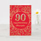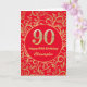 90e Anniversaire Carte d'Anniversaire Rouge et Or Floral. Pour plus de personnalisation, cliquez sur le bouton "Customiser" et utilisez notre outil de conception pour modifier ce modèle.