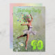 Une belle fée de ballerine dansant sur une invitation à la fête d'anniversaire. La ballerine porte un tutu blanc, et a des traces de fleurs venant de ses cheveux. Elle danse à travers un pré rempli de marguerites.