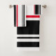 90s Inspired Black Stripe with Red Accent Modern Bath Towel Set