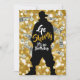 Retro 90’s Hip-Hop Birthday Party Design featuring a hip hop male silhouette wearing baggy pants, a loose hoodie, a backward baseball cap, and high-top sneakers on a shimmering gold glitter background. ✨. Highlighted with bold text: Go Shorty, It's Ya Birthday! Add a personal touch with your photo on the back! The reverse side showcases a black brick wall with vibrant spray paint graffiti drips for a true street vibe 🎤🎶. Designed by ©2025 Miss Sassy Party Designs."