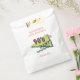 90's Party favour bags featuring a fun style typography of '90's PARTY''. Design includes elements of blues, oranges, and pinks, yellow, ripped edges, geometric patterns and shapes inspired by the 90's. Includes a template for personal customization.