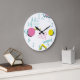 90s Theme Colourful Retro Memphis Pattern Large Clock