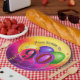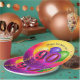 Bright, colorful balloon birthday paper plate featuring vibrant confetti, playful gradients, for a cheerful “Birthday Party” —perfect for milestone celebrations.
