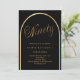 An elegant 90th birthday invitation. A black background with a golden arch on the front.