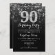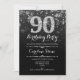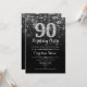 90th Birthday - Black Silver Invitation