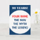 Funny 90th Birthday card for men | The man The myth The legend greeting card. Humourous card idea for dad, uncle, grandpa, brother etc. Personalizable wishes text like Happy Birthday. Ninety year old.