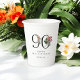 An elegant and simple tropical 90th birthday design that is sophisticated and classy, this paper party cup has palm fronds, hibiscus, fig blossoms, anthuriums, bird of paradise, and orchids adorn the number "90" with beauty and elegance for this special milestone birthday celebration. The text template can be personalized with the guest of honour's name.