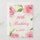 Women's chic watercolor roses 90th birthday party invites templates. Elegant, contemporary, pretty pink stylized watercolor flowers and green leaves painting invitations template for a woman's ninetieth / ninety / 90 years old birthday party celebration. A beautiful digital watercolors paint effect sophisticated, pink colours watercolour floral ornaments roses on a white background. Classy, ornate, swirly, curly, cursive, pink script font. Cute, modern, trendy, stylish, glamourous, girly, feminine, fun, fashionable, personalized / personalised, custom, floral invites templates for her. Decorated on both sides. Double sided printing / printed on front and back / reverse side of these gorgeous, stunning, floral watercolors art invites. Beautiful invites for spring and summer events, or for any season. If you need any assistance customizing your product please contact me through my store and I will be happy to help.