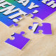 This joyful and exciting birthday jigsaw puzzle design features a large number “90” with a colourful rainbow spectrum inspired gradient pattern, along with the message “HAPPY 90th BIRTHDAY,”, and a personalized recipient name. The background also features a vibrant multicolored rainbow spectrum inspired gradient pattern. A fun, editable birthday puzzle like this might be used to acknowledge somebody’s ninetieth birthday. [~Z0000569]