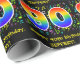 This fun, colourful, and vibrant birthday wrapping paper design features a large number "90" with a rainbow spectrum gradient inspired pattern, along with the message "Happy 90th Birthday,", and an editable name. Part of the background features a pattern of various music notes and symbols having a variety of colours and sizes. Wrapping paper like this might be used when giving a gift or present in honour of a musician’s, a singer’s, a music composer’s, or somebody else’s ninetieth birthday. [~Z0000422]