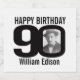 90th birthday black and white photo party paper beer / wine labels. Great to add a personal touch to a surprise ninetieth birthday party. Personalize with your birthday boys or girls photo in the 0 of 90 and personalize with your choice of name. © Designed by Sarah Trett. www.sarahtrett.com for www.mylittleeden.com