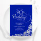 90th Birthday Elegant Royal Blue Silver Roses Invitation