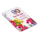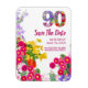 Celebrate a wonderful 90 years with this elegant floral Save the Date magnet featuring rounded corners. A colourful floral “90” surrounded by watercolor blossoms in pink, purple, yellow, and green creates a cheerful and modern design. A practical keepsake for family and friends to display on the fridge until the big day. Fully customizable with your details. Enjoy!