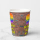 This exciting and vibrant urban street art and graffiti inspired birthday paper cup design features a large number “90” having a colourful rainbow spectrum gradient inspired pattern. It also features the message “Happy 90th Birthday,”, and a custom name. The background features a brick wall pattern. Vibrant, colourful paper cups like this might be fun to have at a birthday celebration being held to celebrate somebody’s ninetieth birthday. [~Z0000543]