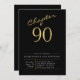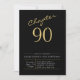 90th Birthday Gold Modern Script Black Invitation