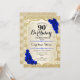 90th Birthday - Gold Stripes Royal Blue Roses Invitation