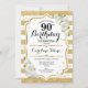 Classy design with faux glitter gold stripes, white roses and confetti. Features stylish script. Perfect for an elegant birthday party. Can be customized into any age.