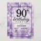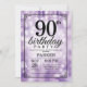 90th Birthday Invitation with Purple String Lights with Purple Glitter Background. Purple Birthday. Adult Birthday. Men or Women Bday Invite. 13th 15th 16th 18th 20th 21st 30th 40th 50th 60th 70th 80th 90th 100th, Any age. For further customization, please click the "Customize it" button and use our design tool to modify this template.