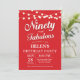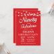 90th Birthday Invitation with String Lights Red Background. Woman Birthday Party. Ninety and Fabulous. Any age. For further customization, please click the "Customize it" button and use our design tool to modify this template.