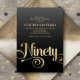 Set the tone for a chic celebration with our elegant black and gold 90th birthday invitation. Featuring bold, retro typography and a sleek design, this invitation exudes a glamourous and stylish vibe—perfect for a women's 90th birthday party. Choose to order printed invitations or download digital invitations for instant access. Make this milestone birthday unforgettable—order your elegant birthday invitations now!