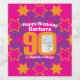 Bright pink and yellow 90th birthday add your own photo wine labels. Add your own ninetieth birthday photo to the 0 of 90 and customize with the birthday message / name of your choice. Currently reads Happy Birthday Barbara 90 a classic vintage. A great way to customize your alcoholic birthday gifts. Unique design by Sarah Trett. www.sarahtrett.com