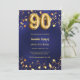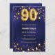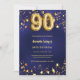 A modern, stylish invitation for a 90th birthday. A navy blue background, decorated with golden stars. The blue colour is uneven. Personalize and add your name and party details.