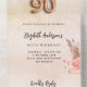 A rustic rose gold and blush pink gradient backround decorated with blush pink florals and pampas grass. Personalize and add your name, and the details. Black coloured letters. Number 90 is written with a rose gold balloons style font.