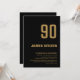 A sophisticated modern minimalist black and gold 90th birthday party invitation.