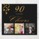 A bottle label for a 90th birthday party. Personalize and add 3 of your own photo from Your/her life, like friends, family, interests, dream goals, pets, age 89 and a date. Date of birth or the date of the party. Golden coloured letters. The word: Cheers, in faux gold written with a trendy hand lettered style script. Elegant, classic chic black background colour, decorated with faux gold party streamers.