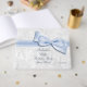 Elegant Ninetieth Birthday Party guest book women. 90th Birthday Party! Beautiful white damask pattern background with a pretty, stylish romantic blue bow and ribbon image. These glamourous, classy guest books are perfect for women and are decorated / printed on the front side only. Women will love this chic modern birthday party guest book. All text is fully customizable to meet your requirements. PLEASE NOTE: All products on Zazzle have flat printed images. Bow and ribbon images purchased from digital-designs-by-elena. If you need any assistance customizing your product please contact me through my store and I will be happy to help.