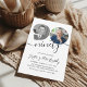 Celebrate a lifetime of memories with this minimalist, elegant 90th birthday invitation. The design beautifully honors the guest of honor by showcasing two cherished photos—one from their past and one current favorite—creating a heartfelt, 'then and now' story. This classic layout features elegant script typography, making it a perfect and sophisticated choice for both men and women. It's the perfect way to invite guests to a memorable milestone celebration.